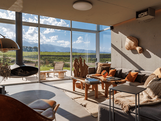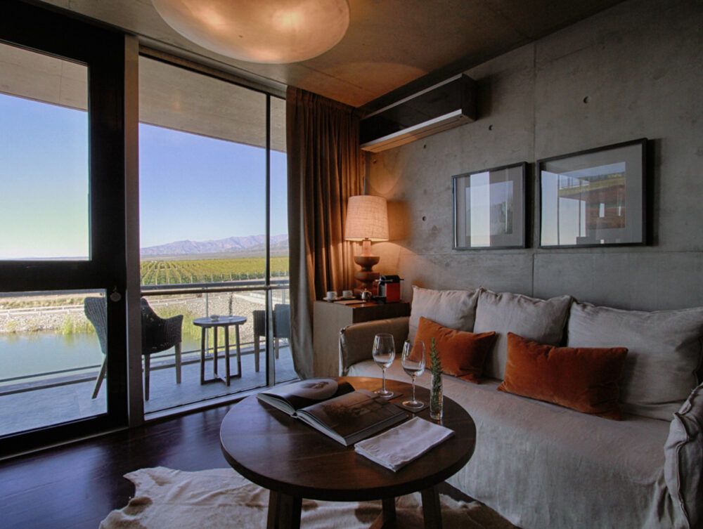 L’architecture contemporaine de l’hôtel s’intègre harmonieusement à son environnement naturel, avec de larges baies vitrées offrant des vues imprenables sur les montagnes et les vignes. Les suites, élégantes et épurées, allient design moderne et confort haut de gamme. Les espaces communs invitent à la détente, tandis que la gastronomie et les vins de la propriété mettent à l’honneur le terroir de la Vallée de Uco, pour un séjour exclusif au cœur de l’une des plus belles régions viticoles d’Argentine.