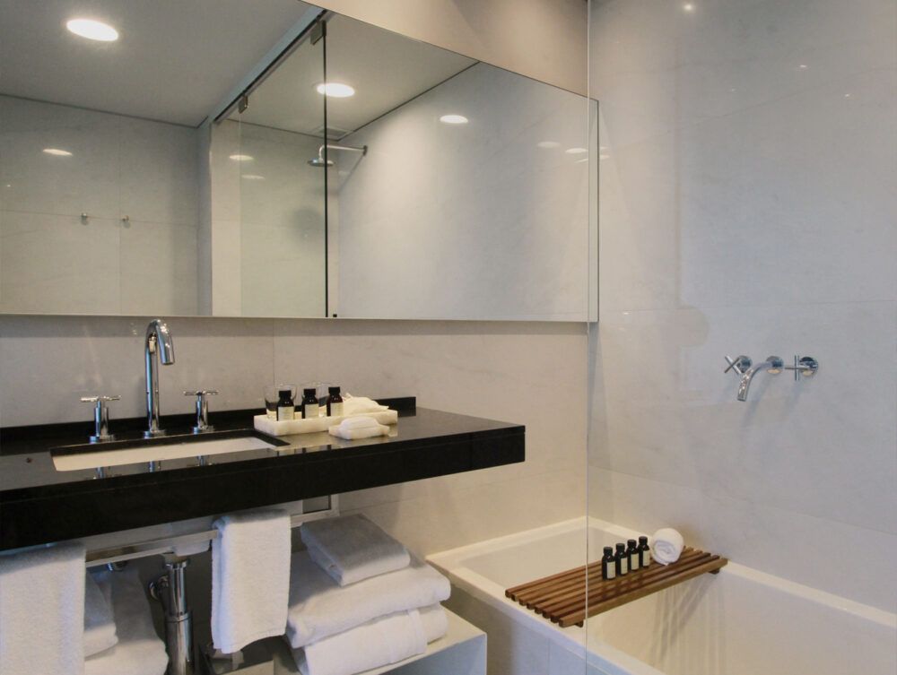 - Salle de bain avec douche à l’italienne, et pour certaines suites une baignoire spacieuse avant le bain principal.