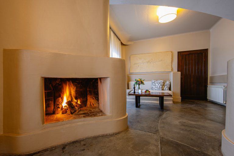 • Spacieux salon séparé avec cheminée à bois – Œuvres d’art originales – Magnifique cadre avec bâtisses en adobe