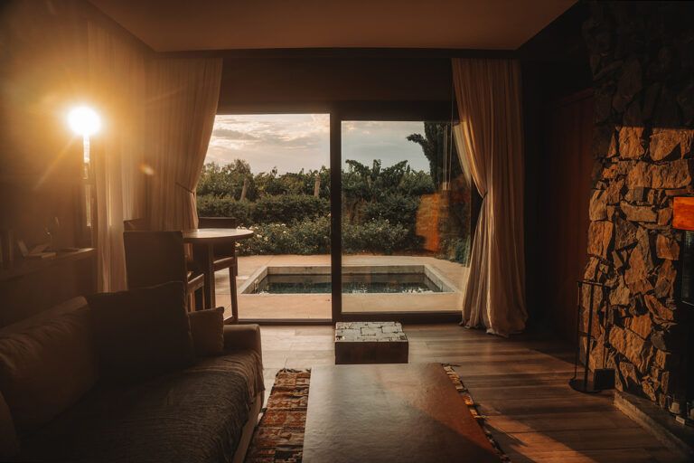 - Self-standing room – 100m away from main house, surrounded by vineyards – Outdoor deck facing west, floor-to-ceiling window offering stunning views of the Andes