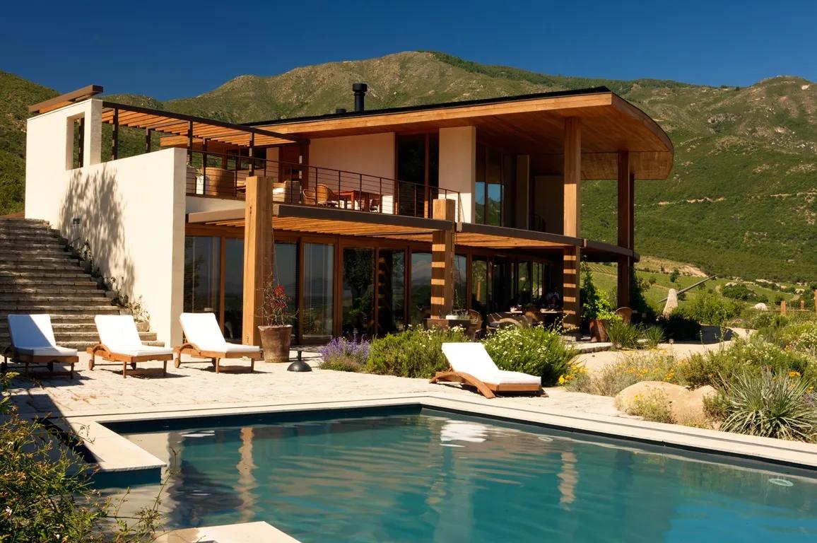 « The Marnier Lapostolle family created the Chilean Lapostolle vineyard. They invite you to enjoy nature in the sophistication of their residence, an extraordinary place. This estate, with modern architecture and respect for the environment, features spectacular views of the vines and the valley. A vast terrace extended by an infinity pool offers a calm setting, perfect to relax and appreciate the beauty of the scenery. »