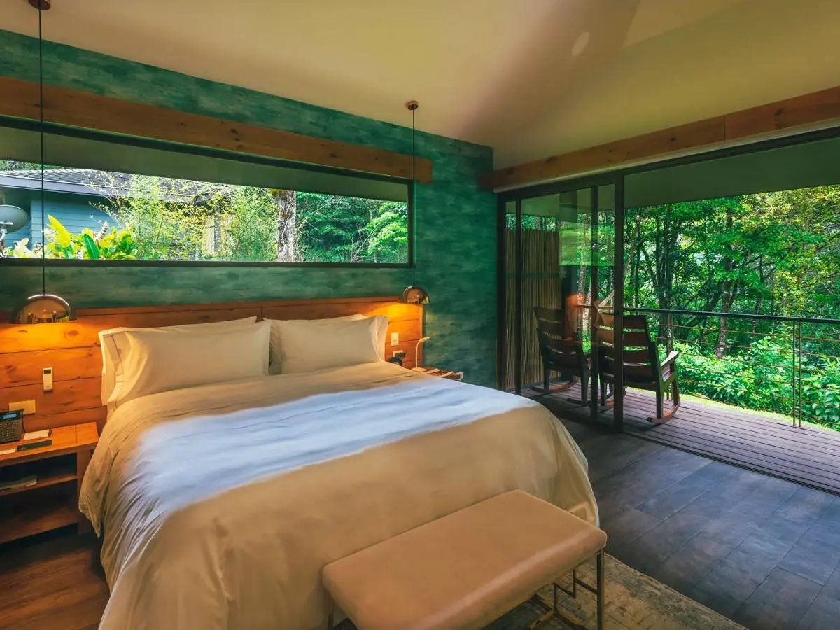 Blotti dans les montagnes centrales du Costa Rica, cet éco-lodge raffiné invite à découvrir la splendeur de la forêt nébuleuse tropicale. À travers les grandes baies vitrées, la nature luxuriante est comme un tableau, émergeant de la brume. Les suites se fondent dans le paysage, et offrent des vues à couper le souffle sur la rivière ou la montagne depuis leur deck privé équipé de rocking-chairs. Spacieuses, décorées dans des tons naturels, et disposant toutes d’un bain bouillonnant extérieur, elles créent une atmosphère réconfortante de bien-être tranquille, en parfaite harmonie avec cet environnement privilégié. Une petite ferme écologique fournit le restaurant qui sert une cuisine fortement inspirée des traditions costaricaines.