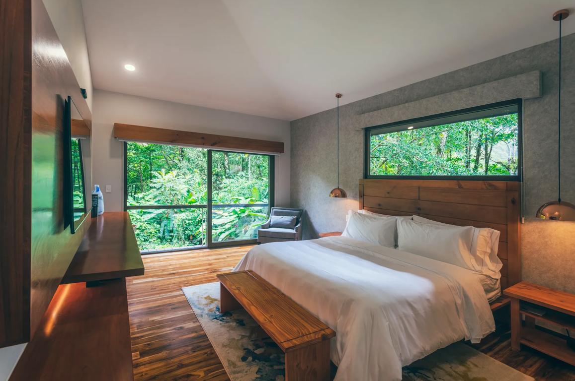 - Les suites luxueuses de l'El Silencio Lodge & Spa sont en terrasses le long de la colline, offrant une intimité accrue et une vue parfaite sur la montagne, la forêt ou la rivière.