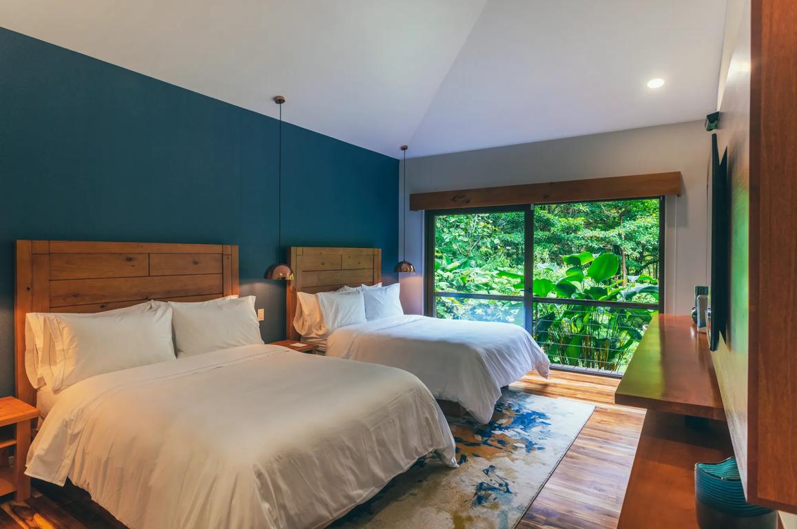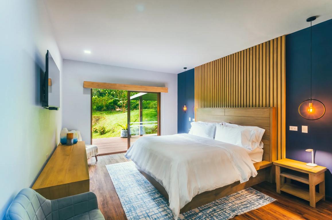 - Les villas à deux chambres à coucher sont entièrement équipées d’installations accueillantes et de vastes aires de détente, salon spacieux , salle à manger et salle de lecture permettent aux clients de se rendre dans un lieu de vie magique immergé dans les paysages montagneux et les forêts tropicales légendaires du Costa Rica.