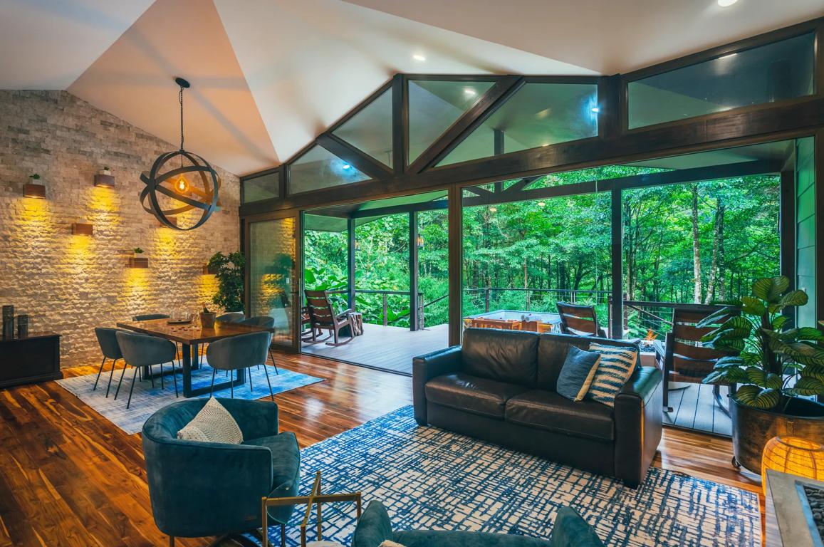 - Comprend des équipements haut de gamme, une cheminée à gaz, un bain à remous extérieur chauffé privé et une terrasse d'observation avec fauteuils à bascule fabriqués à la main