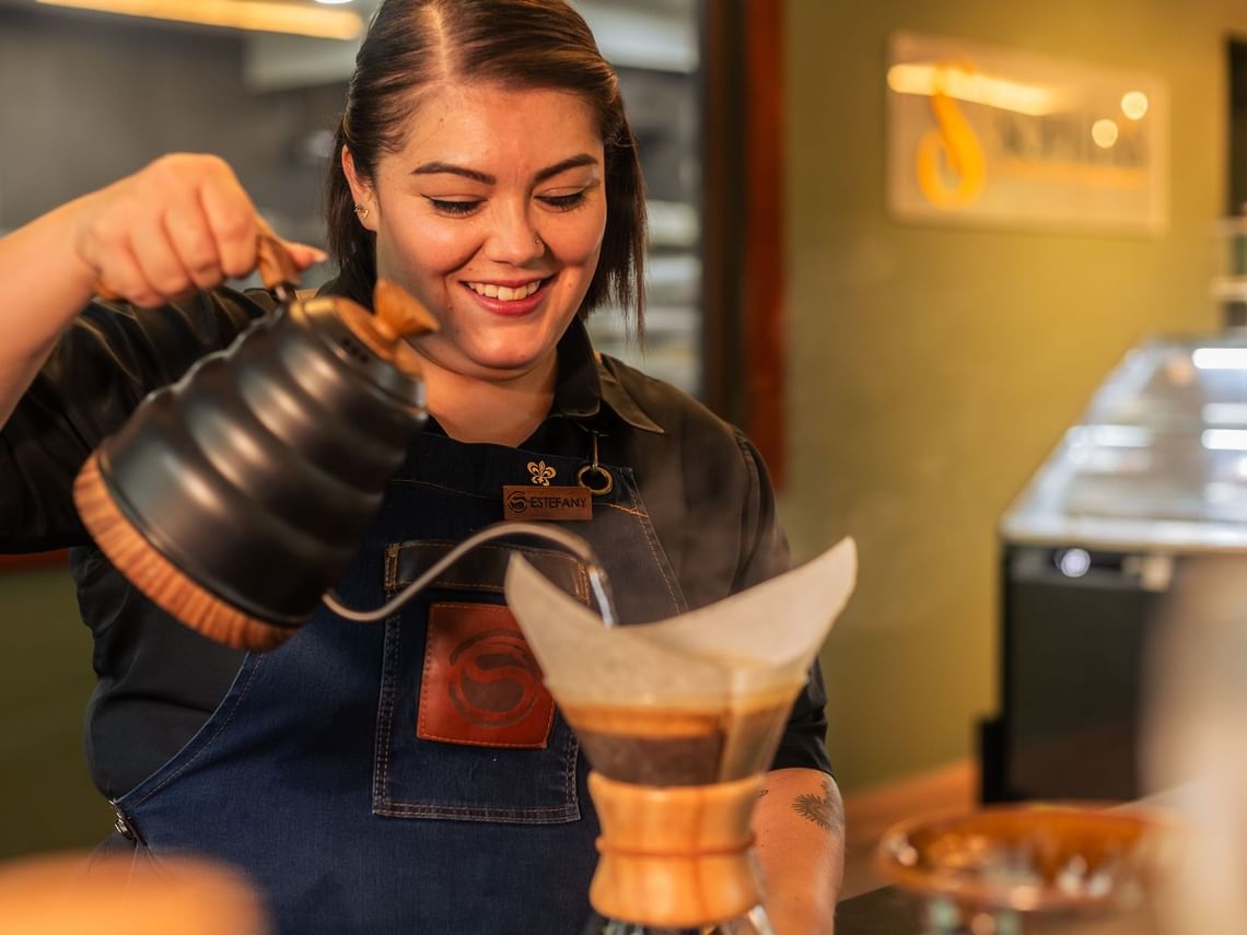« Costa Rica’s privileged climate and topography are perfect for growing delicious coffee. Learn about the fascinating history of coffee’s introduction to our country and its far-reaching social, cultural, and economic impact. Followed by a dream tasting session where we tantalize you with premium varieties including samples from the highlands that trim El Silencio Lodge & Spa. I will gladly share how altitude, soil’s mineral content, shade level, rainfall index, and brewing method impact acidity, body, and flavor. »