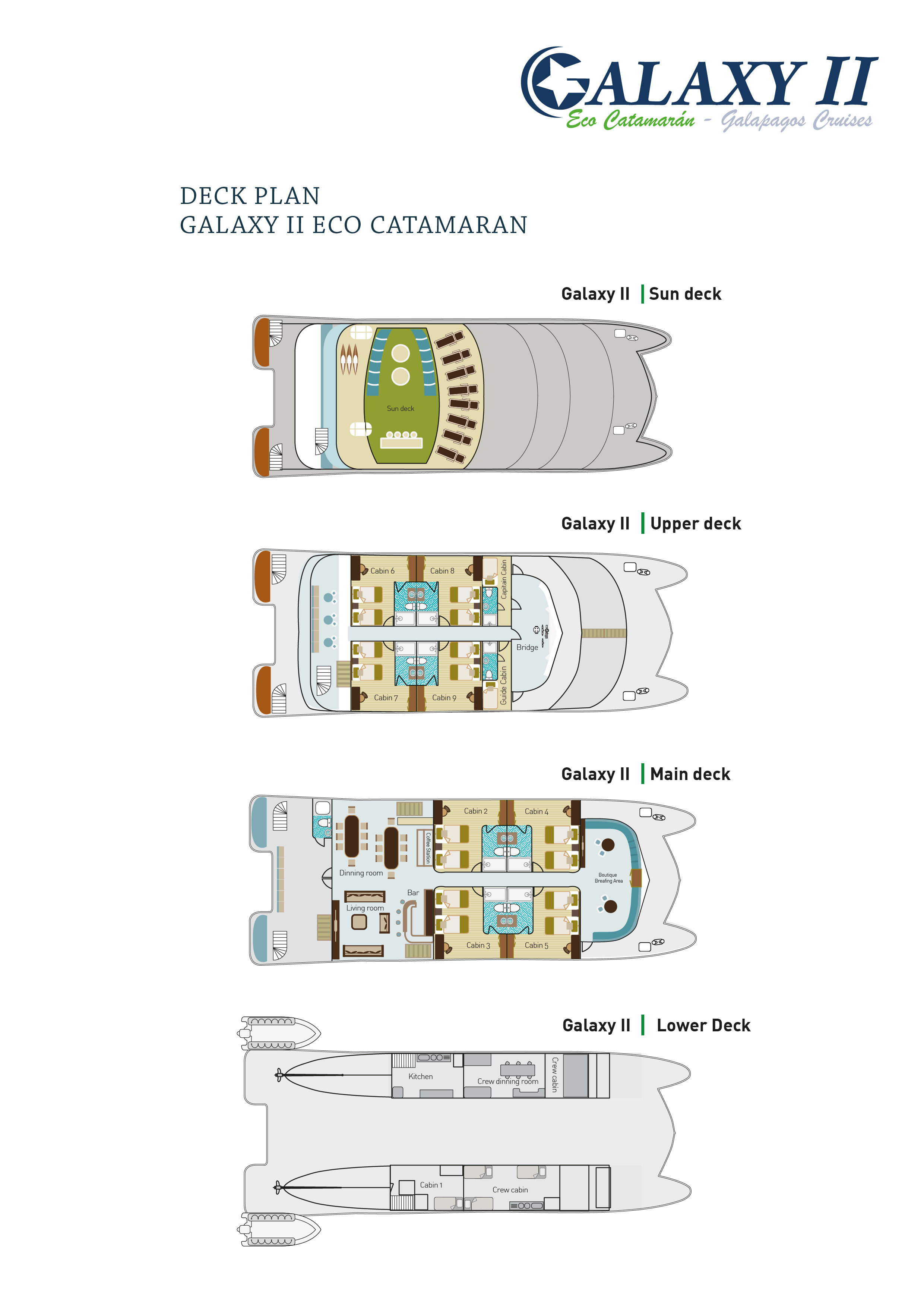 Matinée : Visite de la pointe Cormorant connue par sa plage verte. Possibilité de pratiquer de la plongé de surface. Observation des otaries, des iguanes de mer, des frégates et des pélicans entre autres. Visite de la couronne du diable (Devil´s Crown). Navigation en zodiac. Ce site, tant à l´intérieur qu´à l´extérieur de la couronne, est l´un des meilleurs spots de l´archipel pour la pratique du snorkeling (plongée de surface). Après midi : Visite de la « Baie du Courrier » (Post Office Bay) située au Nord de l´île de Floreana. Après un débarquement mouillé, vous découvrirez l’ancien site faisant office de relais postal dans l’Archipel des Galápagos. Possibilité de se baigner et pratiquer le snorkeling à votre guise. Pension complète. Nuit à bord du Galaxy II.