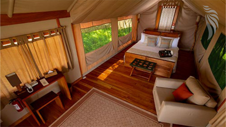 With just 9 stylish African-style tents immersed in lush vegetation and a family suite close to the main lodge, the feeling is discreet, unpretentious, familiar, and wholly appropriate to our natural world.