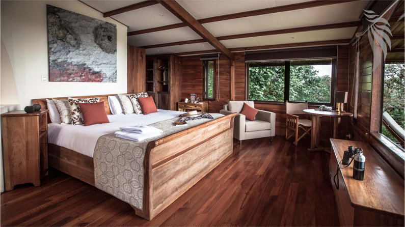 Ideal for multigenerational families and those travelling with younger children, our Family Suite sleeps six. It features a master bedroom and two twin rooms, all with their own bathrooms. Its wooden furniture and floorboards blend perfectly with the natural environment and give it a warm, homely feel, perfect for travelling broods.