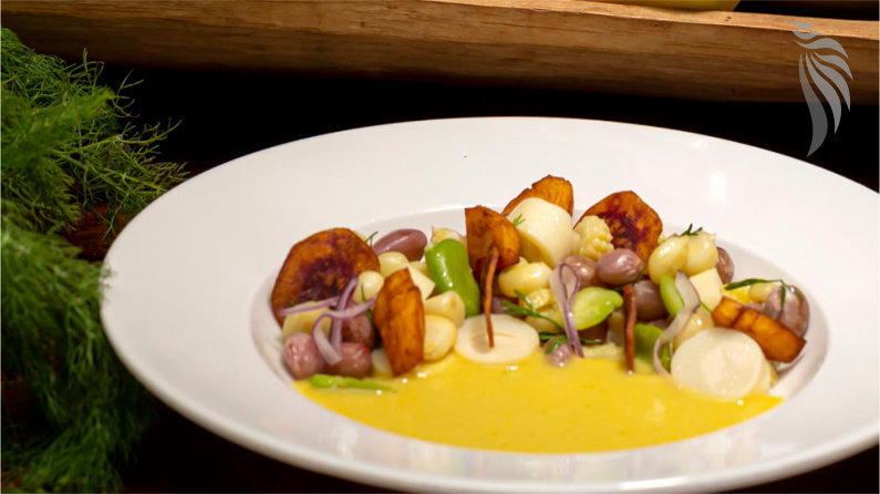 Think quinoa pesto salad with roasted carrots, vegetables & yogurt… Grouper in an Ecuadorian coastal-style coconut sauce… Wahoo ceviche with sweet-potato cubes… Pork leg, marinated in beer, lemon and butter, roasted, accompanied by a passion fruit sauce, steamed corn in a leaf, avocado and spicy pickle…