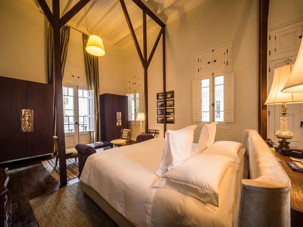 - The Junior Suite-Aposento room offers either a king size bed or two twin beds. These rooms average about 22-36 square meters -approximately 236 -387 sq feet. Situated throughout the historic mansion and the contemporary wing on all floors- these rooms overlook either Calle San Martin or the inner Patio. Offering complimentary high-speed wireless Internet connection- complimentary local phone calls- mini-bar- plasma TV with HD channels- iPod docking station.