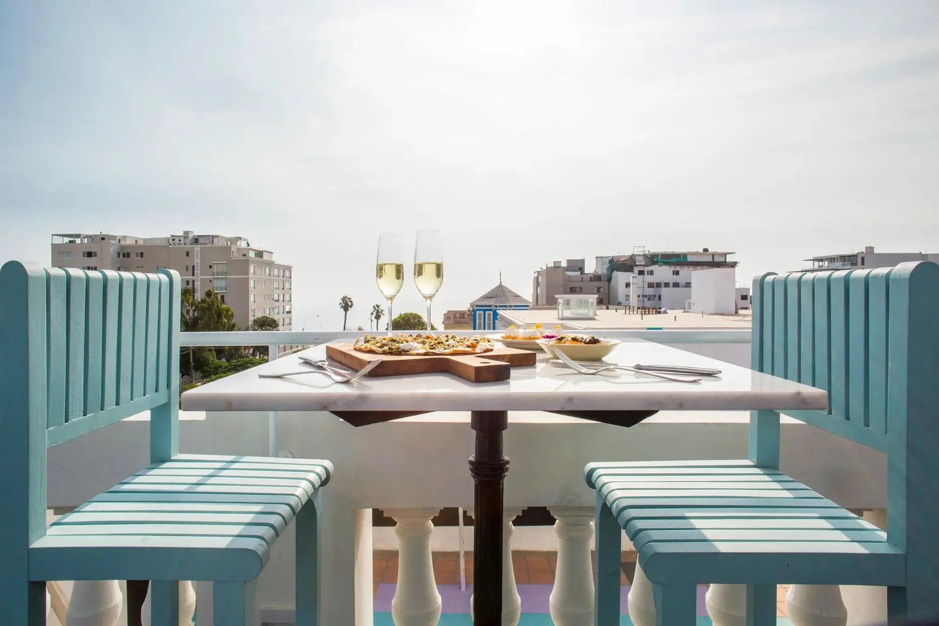 “Amidst the bustling metropolis of Lima, The Terrace by Hotel B is a great place for our guests to relax in secluded comfort, with the advantage of still being able to view the ocean or district of Barranco. Cocktail style marble top tables, lounge sofas and deckchairs all provide an inviting environment for guests to relax, enjoy a cocktail or share some tapas. The Terrace is open all day, with a Terrace Butler on hand to offer service from the exclusive rooftop terrace menu. ”