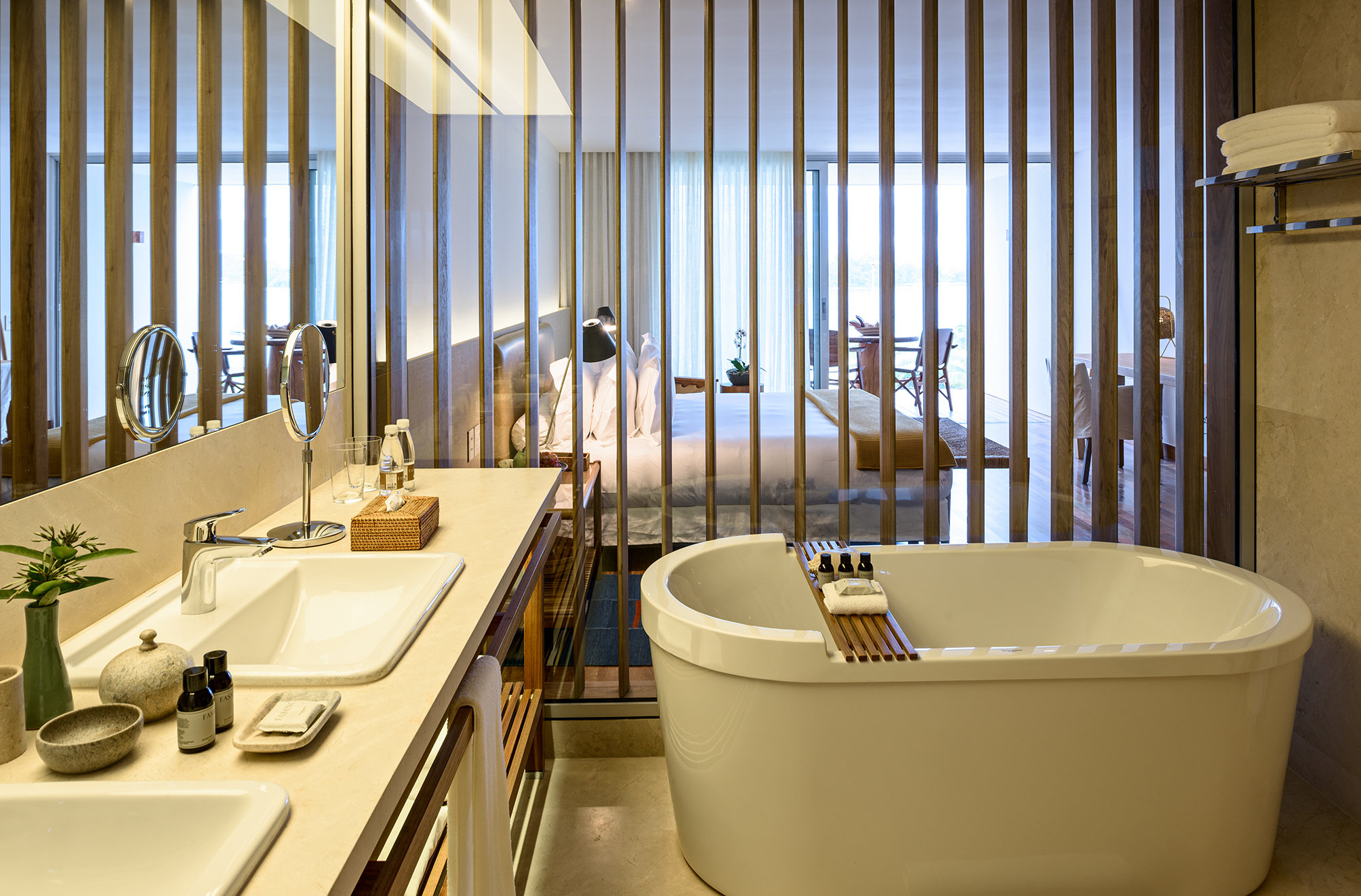 The new Fasano has 60 spacious apartments, facing the sea and fields, as well as a sophisticated SPA designed over 2 thousand square meters destined for the well-being and treatment for adults and children, a fitness center, a jewelry boulevard and two restaurants conceived distinctively in order to attend different gastronomic moments of the day.