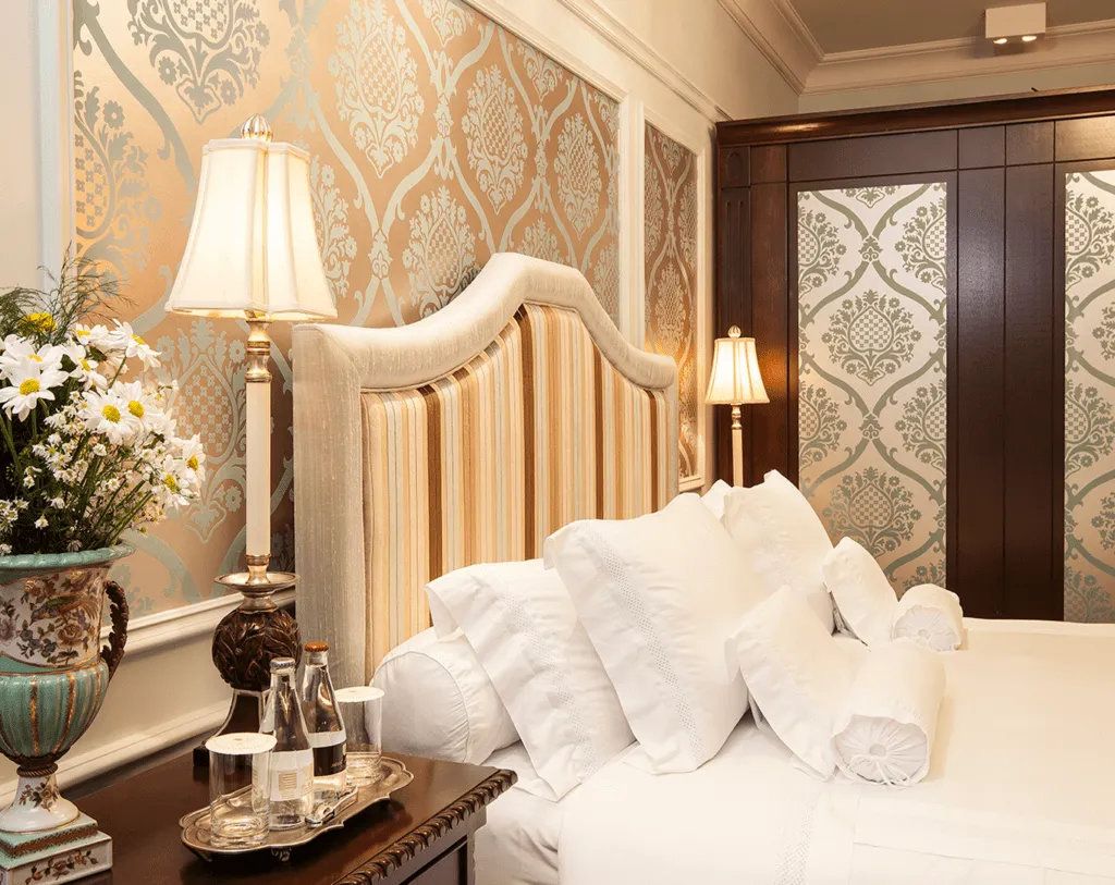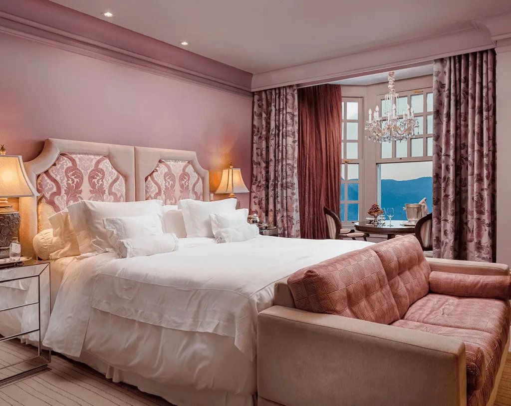 - Granada Suite - 32sqm - Upon entering the Granada suite, guests are surrounded by the unique atmosphere of charm and refinement marked by a combination of pink and brown tones. The natural color of wooden furniture has been preserved. - The elegant setting is complete with the Marie Therese crystal chandelier that hangs over the bed. This suite is the perfect spot to experience unforgettable moments.