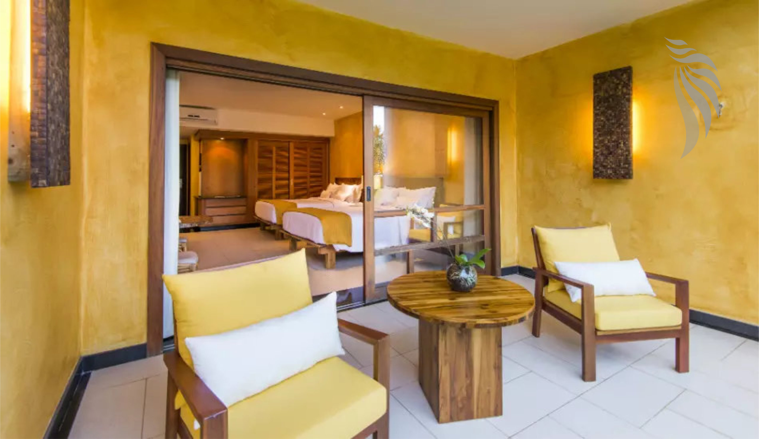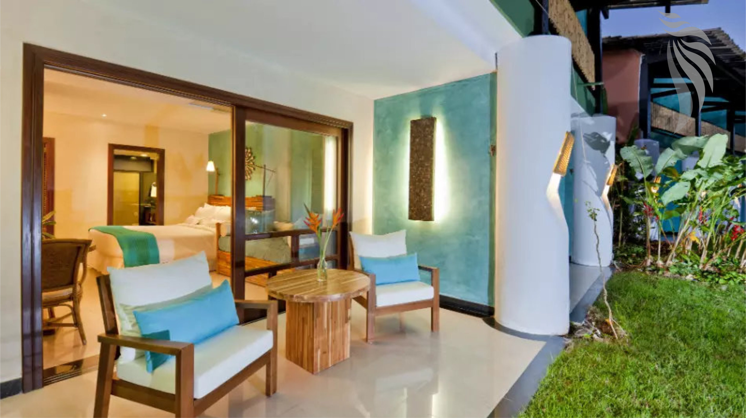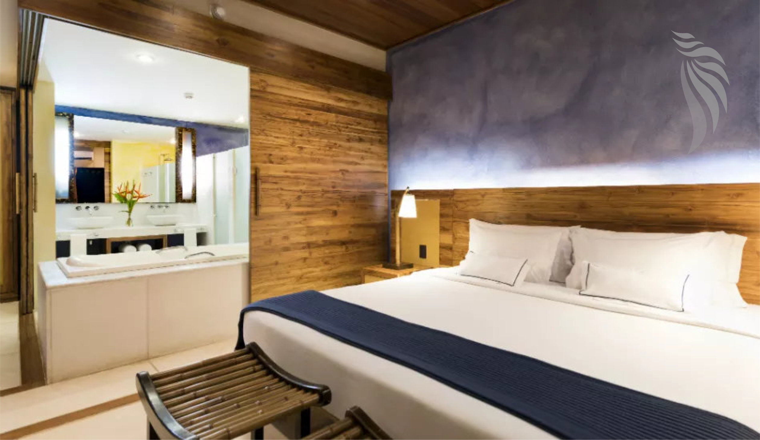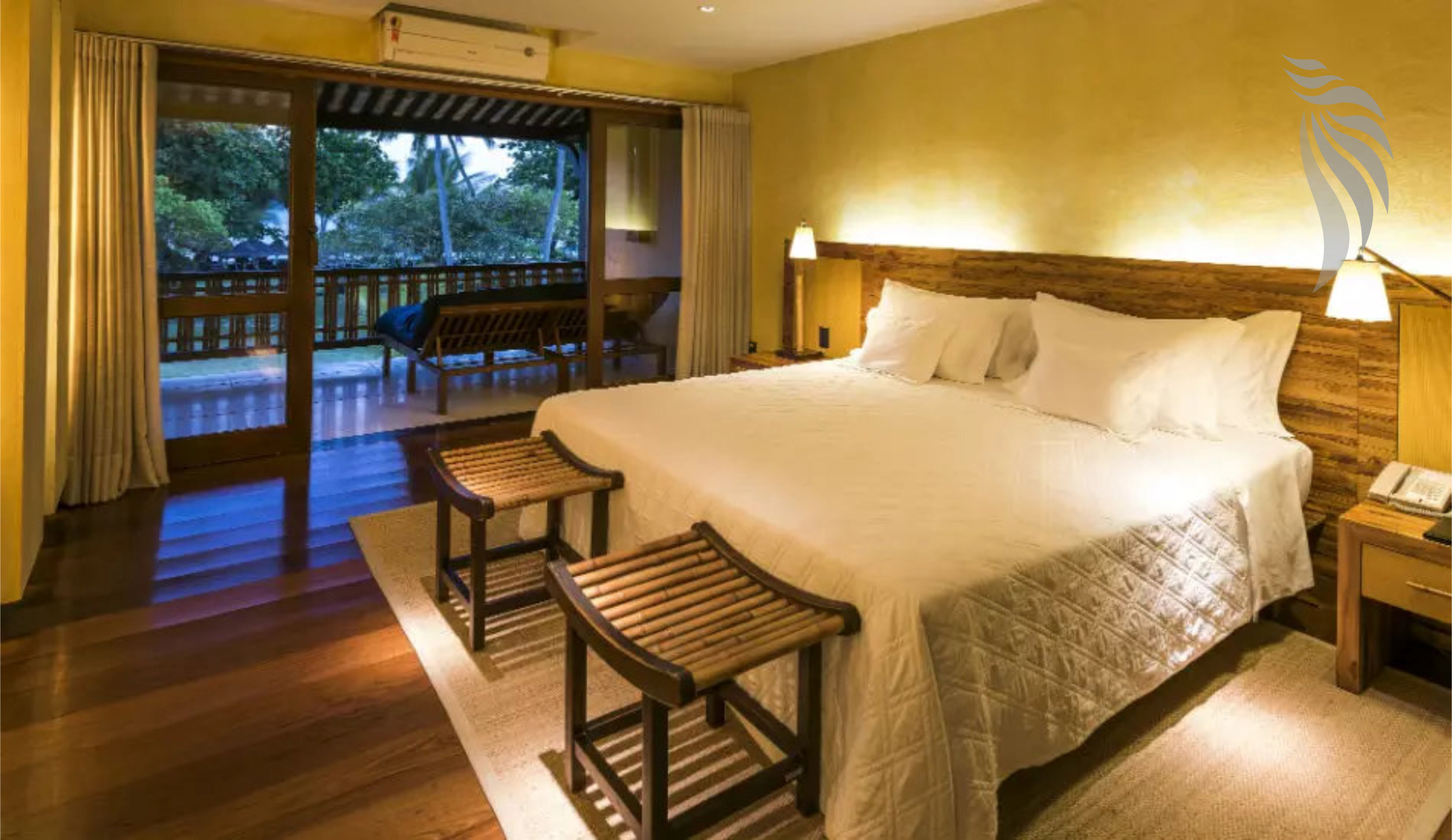 Superior Ocean category offers a spacious balcony with hammock and outdoor jacuzzi facing the sea. Located on the top floor, in a quiet place and away from the social area (wing 9), the apartment has a King Size bed, ideal for couples. In addition, the room is surrounded by a beautiful tropical garden.