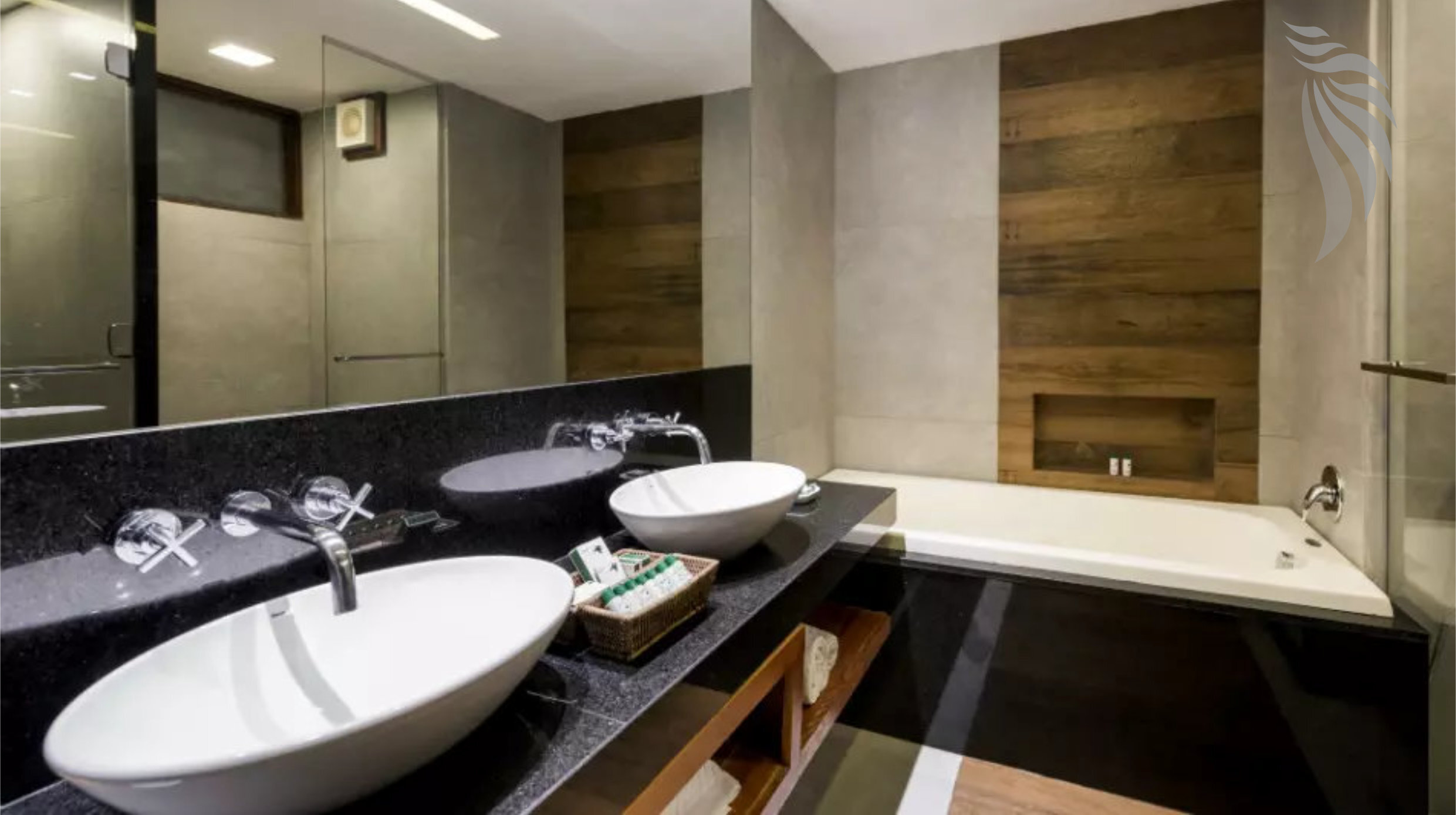 With 220m², it has an additional room with two Twin beds, bathroom with jacuzzi, dining room, closet, toilet, living room, master suite with King Size bed (wing 17). Complimentary minibar (water, soft drink and beer – except premium – with daily restocking), optional in-room breakfast until 11:30 am, private transfer, access to the relaxation area of the Spa (+16 years old).