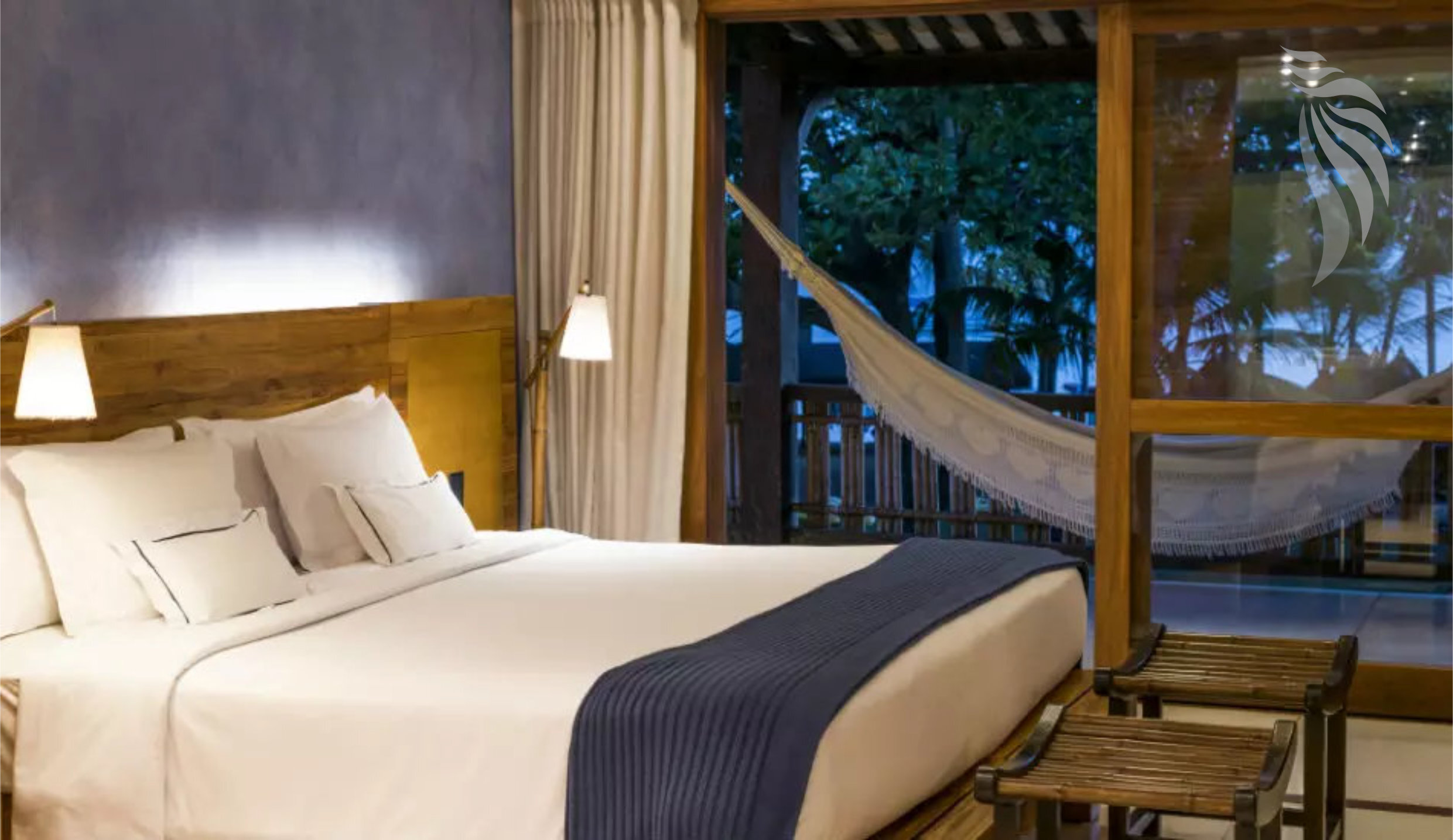 Imagine fully experiencing the integration with this nature with great comfort, refinement and sophistication. The spacious rooms, some facing the sea and with a comfortable hammock, favor the use of natural materials and decorative elements created by local artists. The layout of the furniture has been designed to highlight the spectacular view of each of the bedrooms and suites. Relax, take a deep breath and feel the nature. Welcome to Bahia.