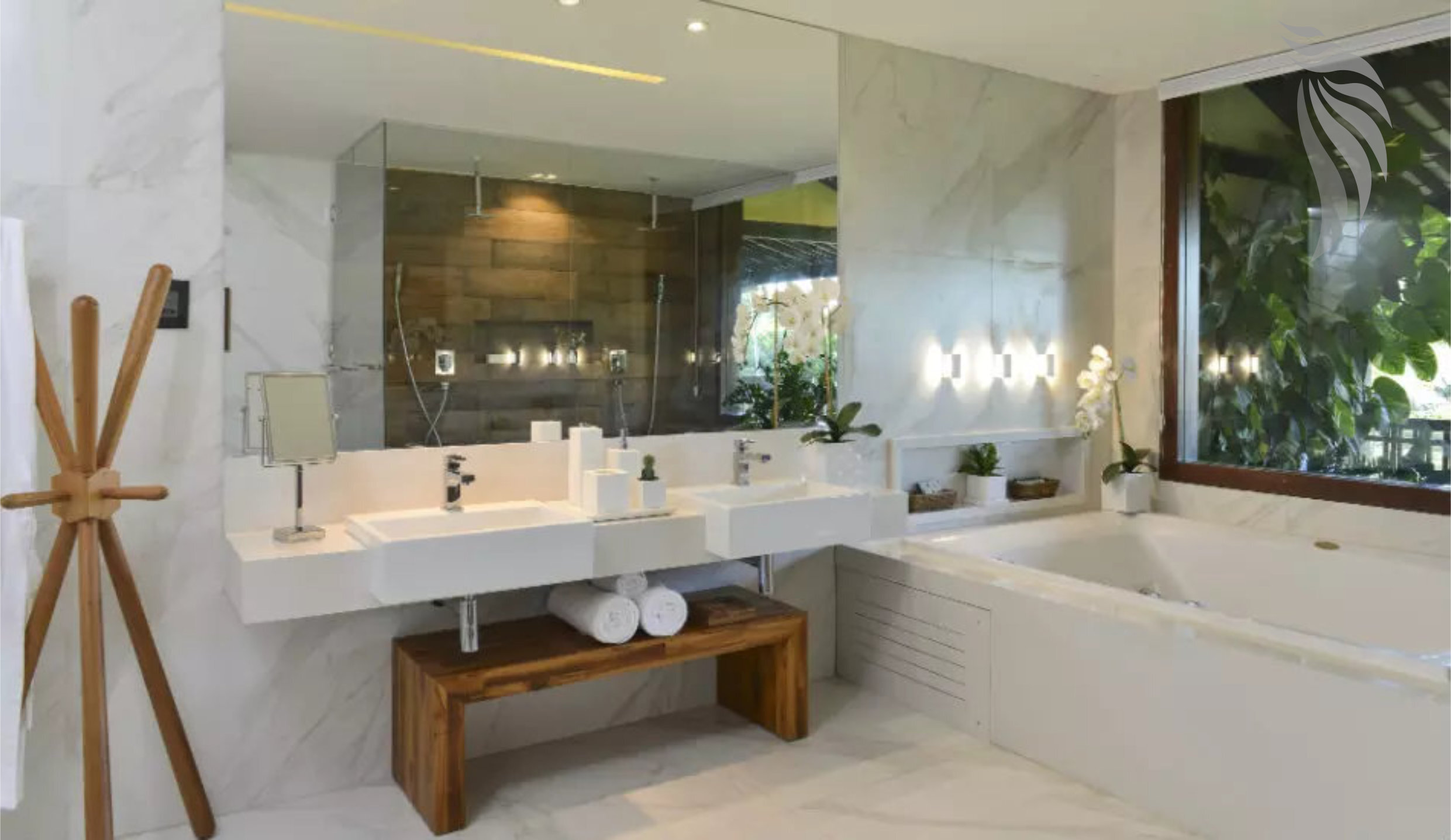 The houses have three suites on the first floor - bathrooms overlooking the external landscaping - and a social area with living room, kitchen and swimming pool on the top floor where you can observe the exuberance of the surrounding nature. Built with materials that reduce environmental impact as much as possible, the houses have 320m². Guests 16 years old or older have free access to the Spa's relaxation area. Direct access from Pool Villas to the hotel's premises is available from 8 am to 12 am.