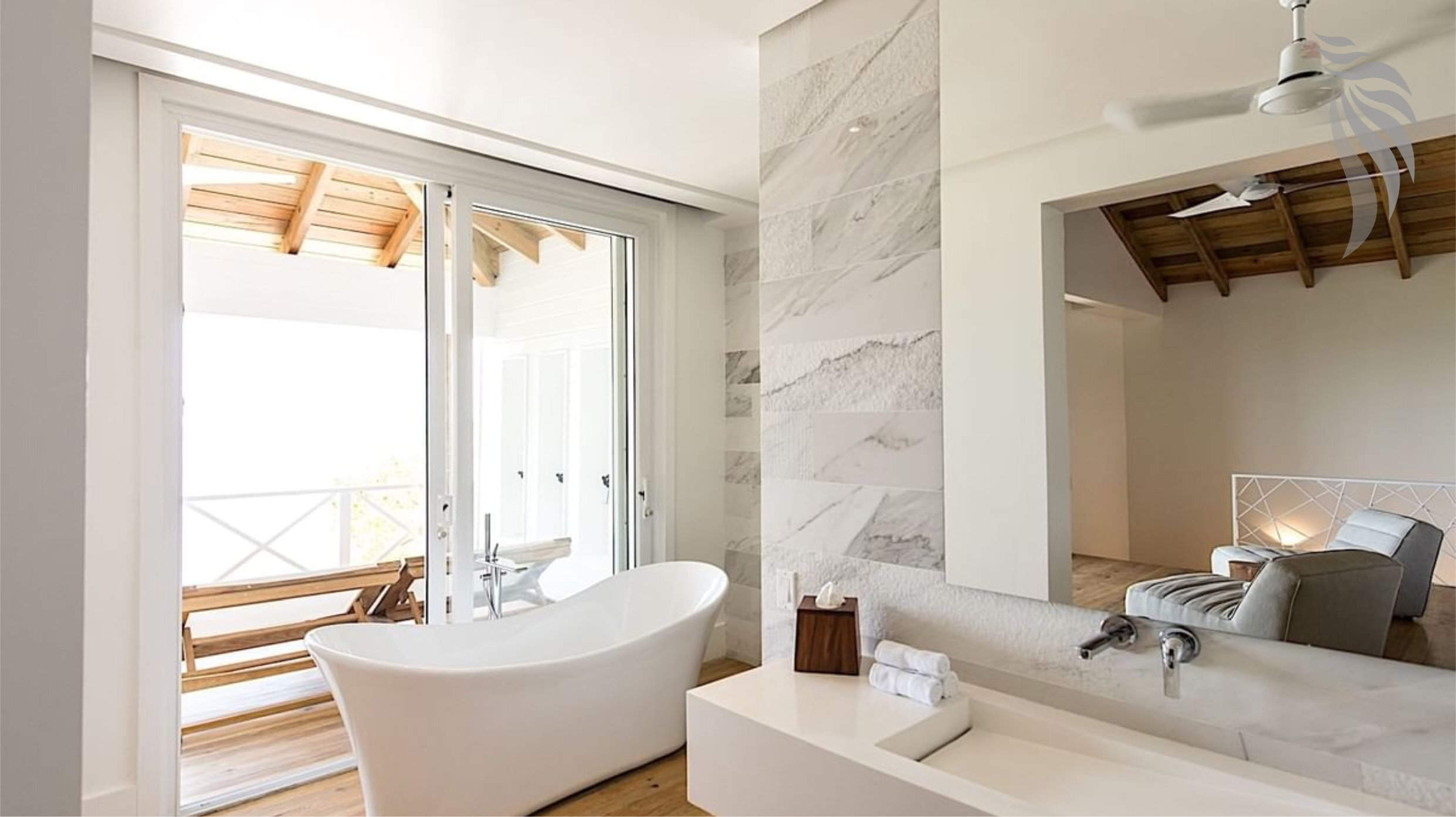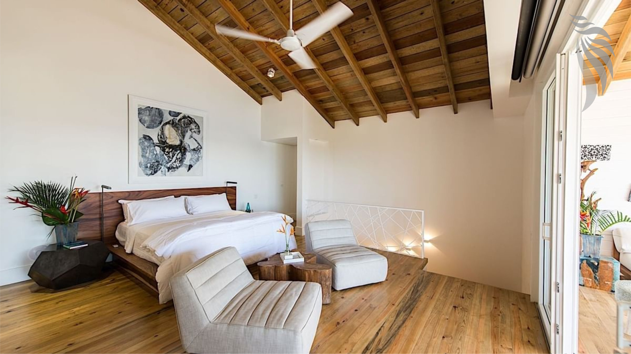 Enter our amazing top-floor Master Suite with a large King size bedroom and bathroom. The room opens into a balcony with a comfortable sitting area and beach chairs facing the Caribbean Ocean. It’s perfect for a romantic getaway!