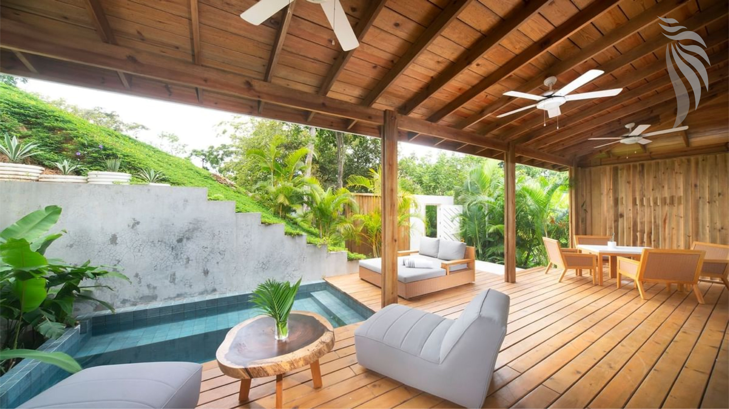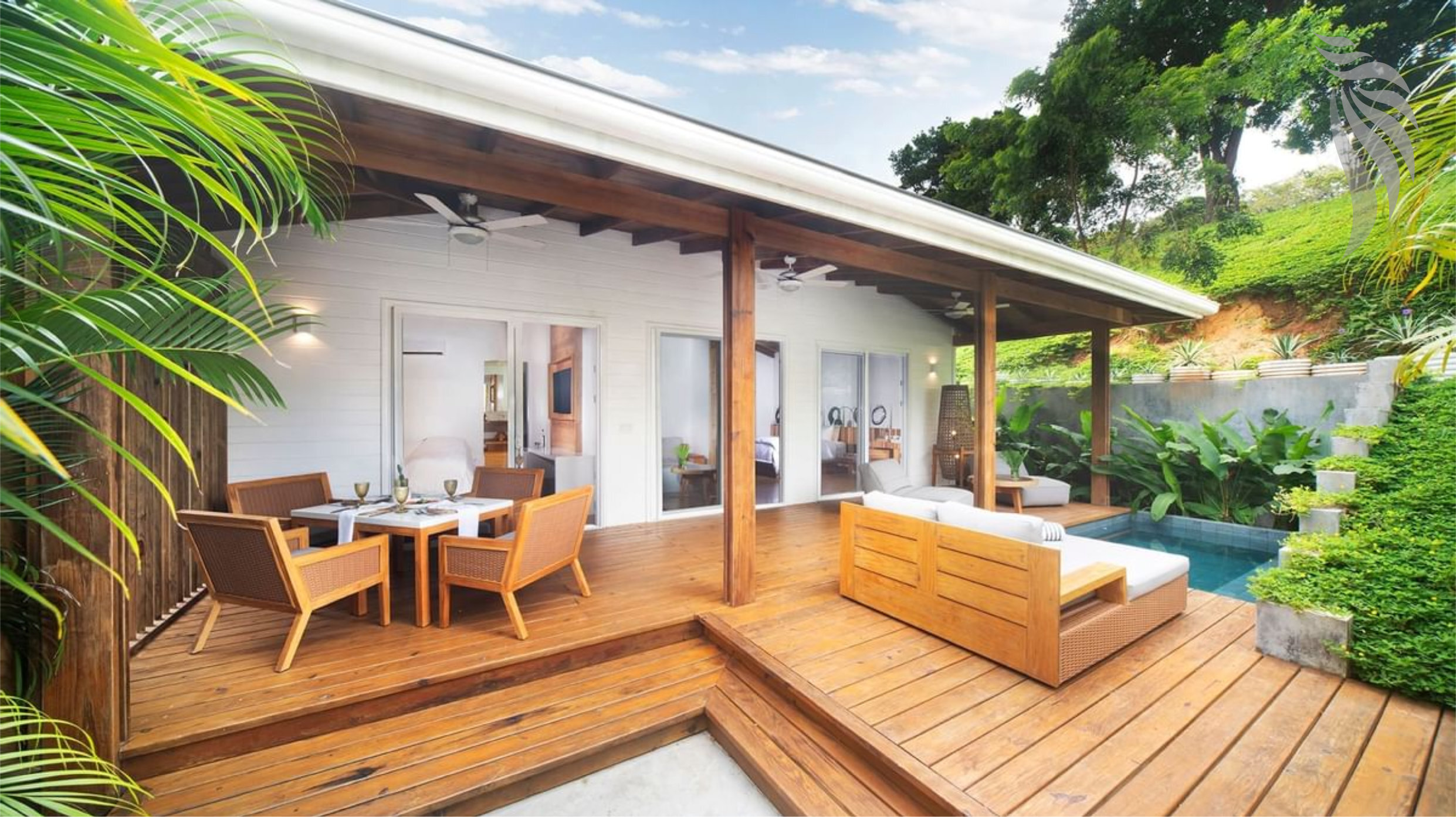 The Villa is surrounded by nature and includes its own private plunge pool and deck. Comfort, privacy and design may well describe this brand new area. The surroundings, colors and amenities perfectly come together to create a true sanctuary of tranquility and peace.