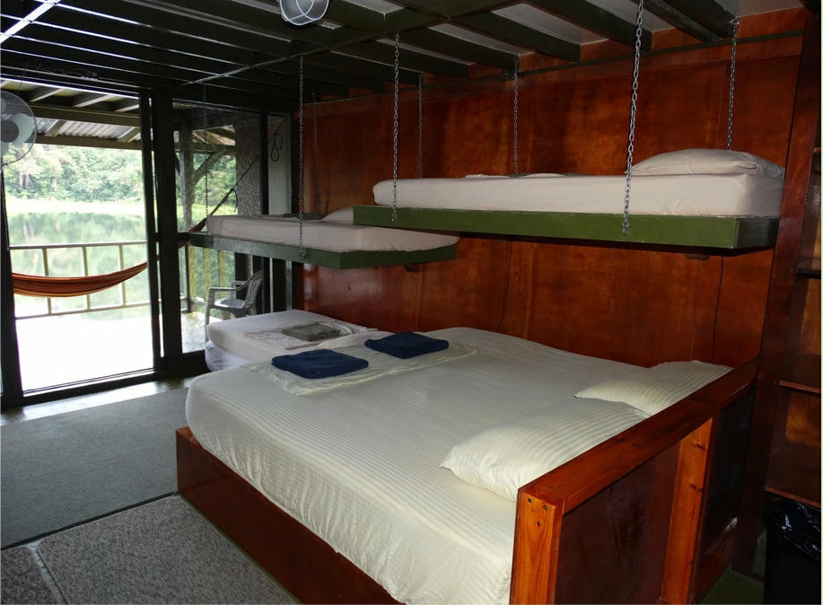 All of our rooms feature a private balcony overlooking the lake and jungle. Each room has a private bath with shower. All linens and towels are provided.