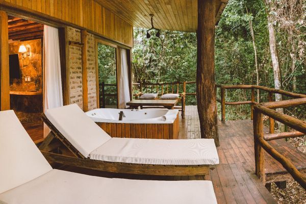 Located in the Paraná rainforest, La Aldea de Selva lodge combines nature and comfort. The rooms highlight the rustic and indigenous aspects of the area, with furniture made by local artists. The perfect combination of rustic and luxury.