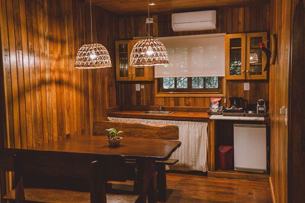The Ñande House, a 90 sqm, replica of a typical house in Misiones, is perfect for families, since it houses up to six people and allows our guests to be as comfortable as in their homes during their stay. It has a living room and a dining room, decorated with furniture and native touches, It also has three bedrooms, two with two single beds each and one with a Queen bed.