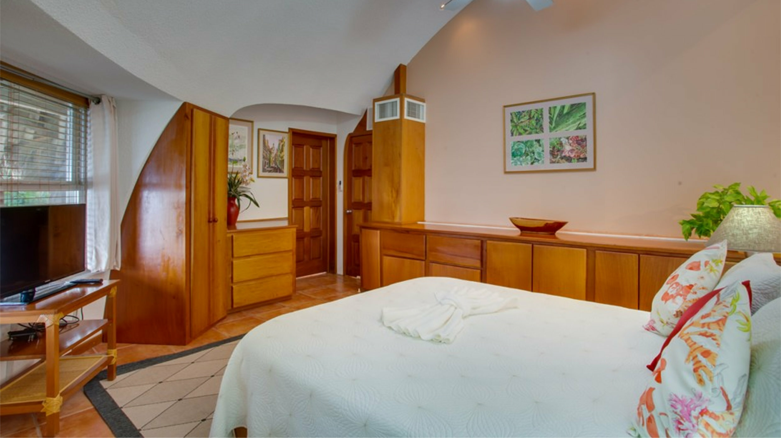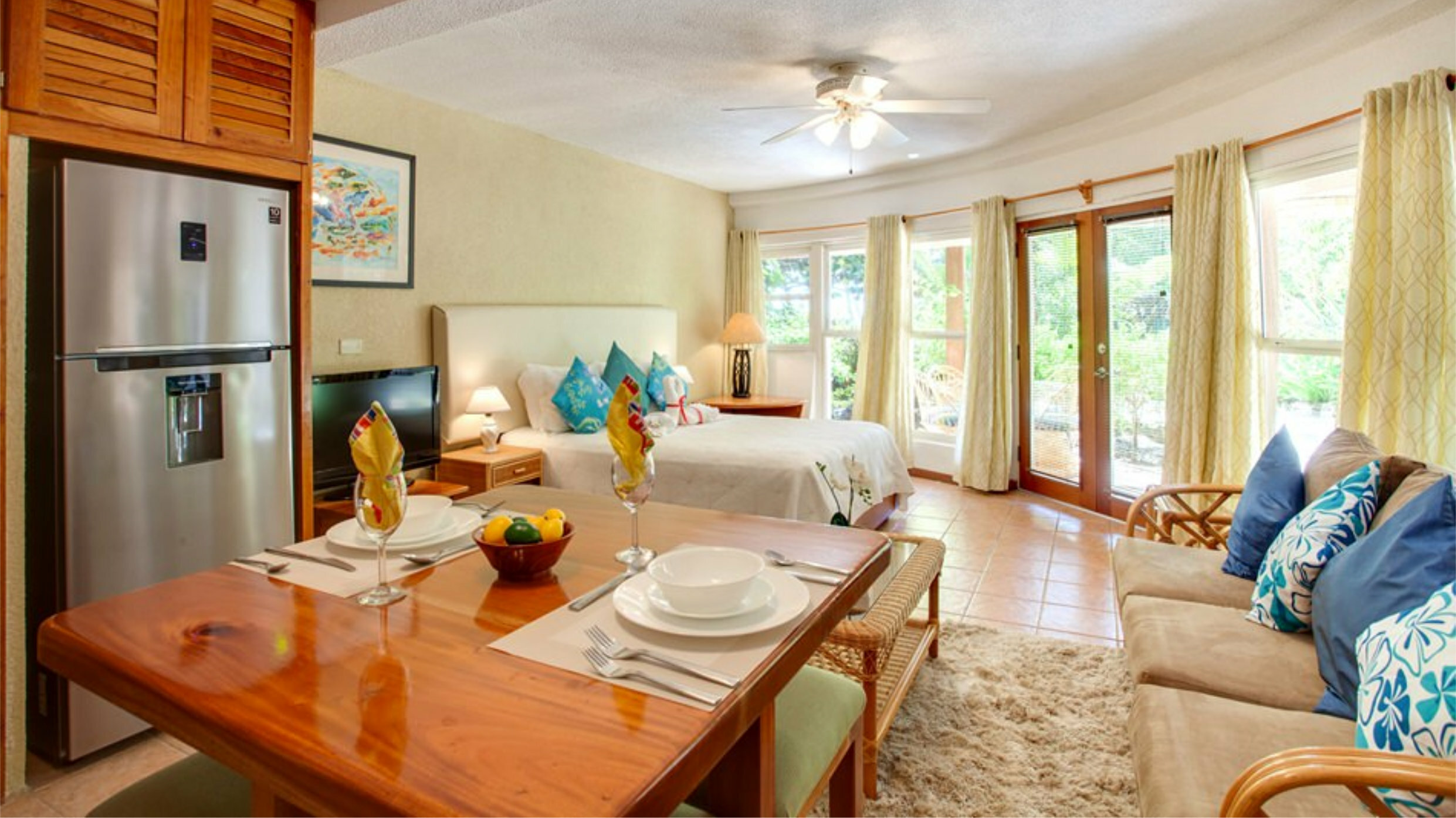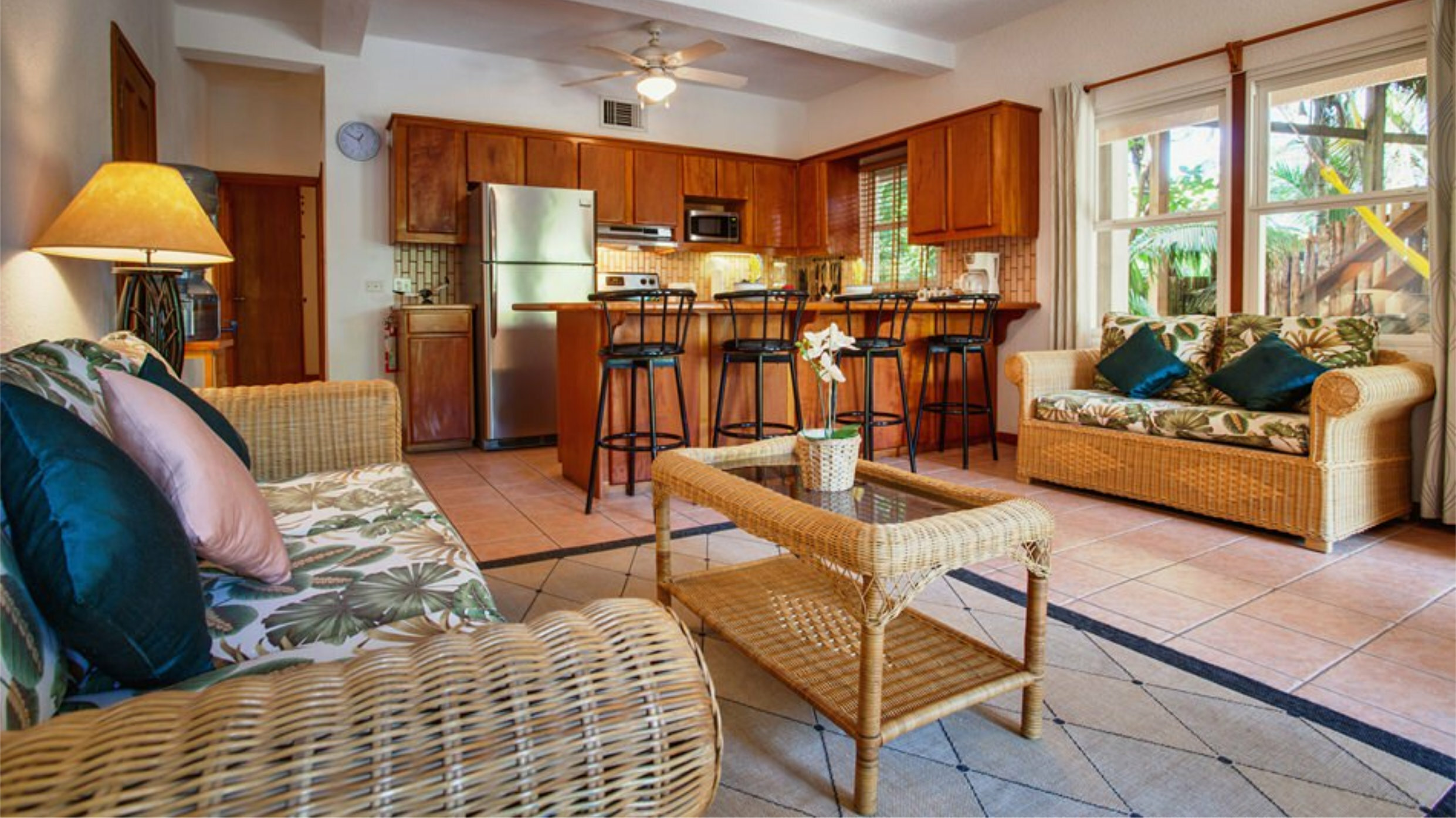 *The Garden View Three Bedroom suite is our smaller unit at 800sq ft. The Ocean Front Three Bedroom Suite, at 1290sq ft,is significantly larger and if you are looking for more spacious accommodation you may wish to consider this unit.