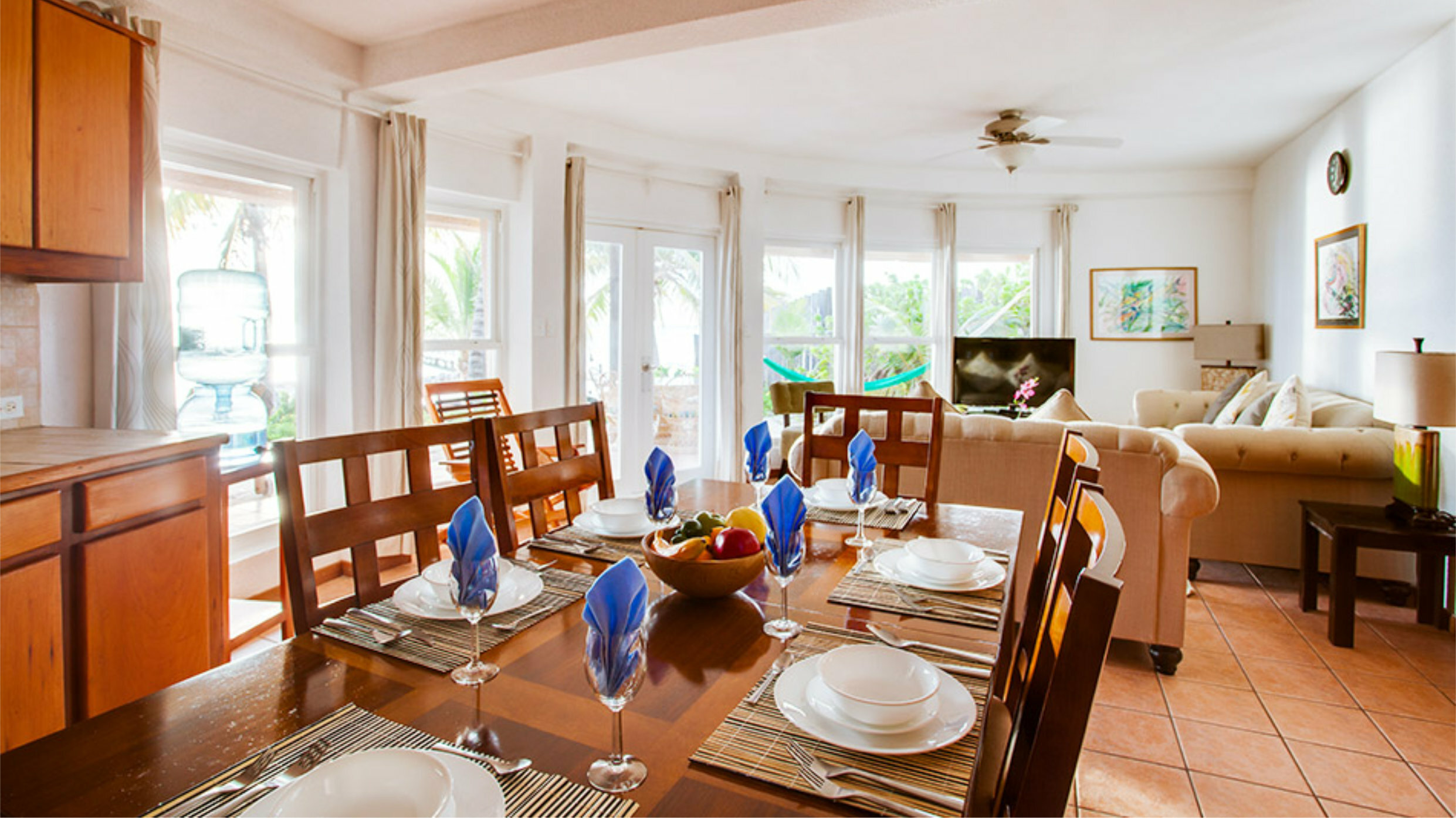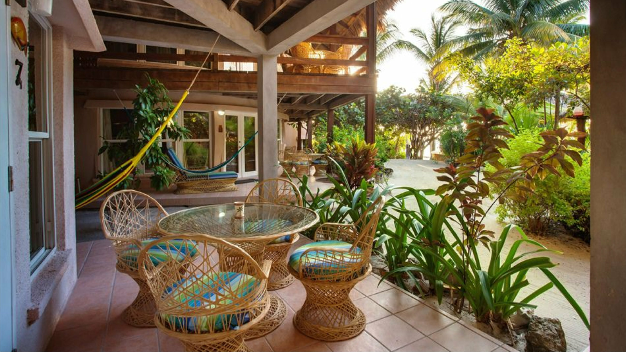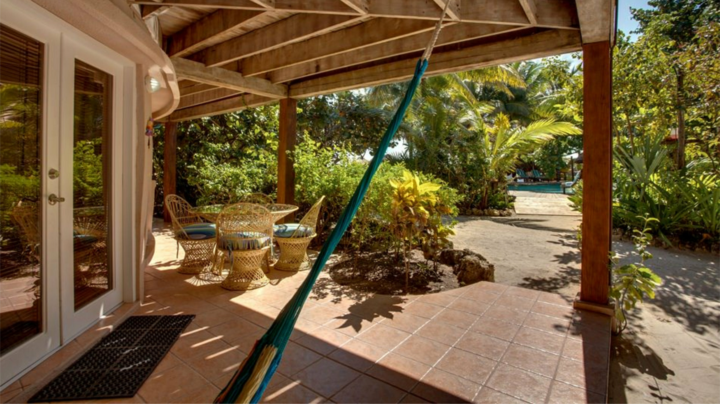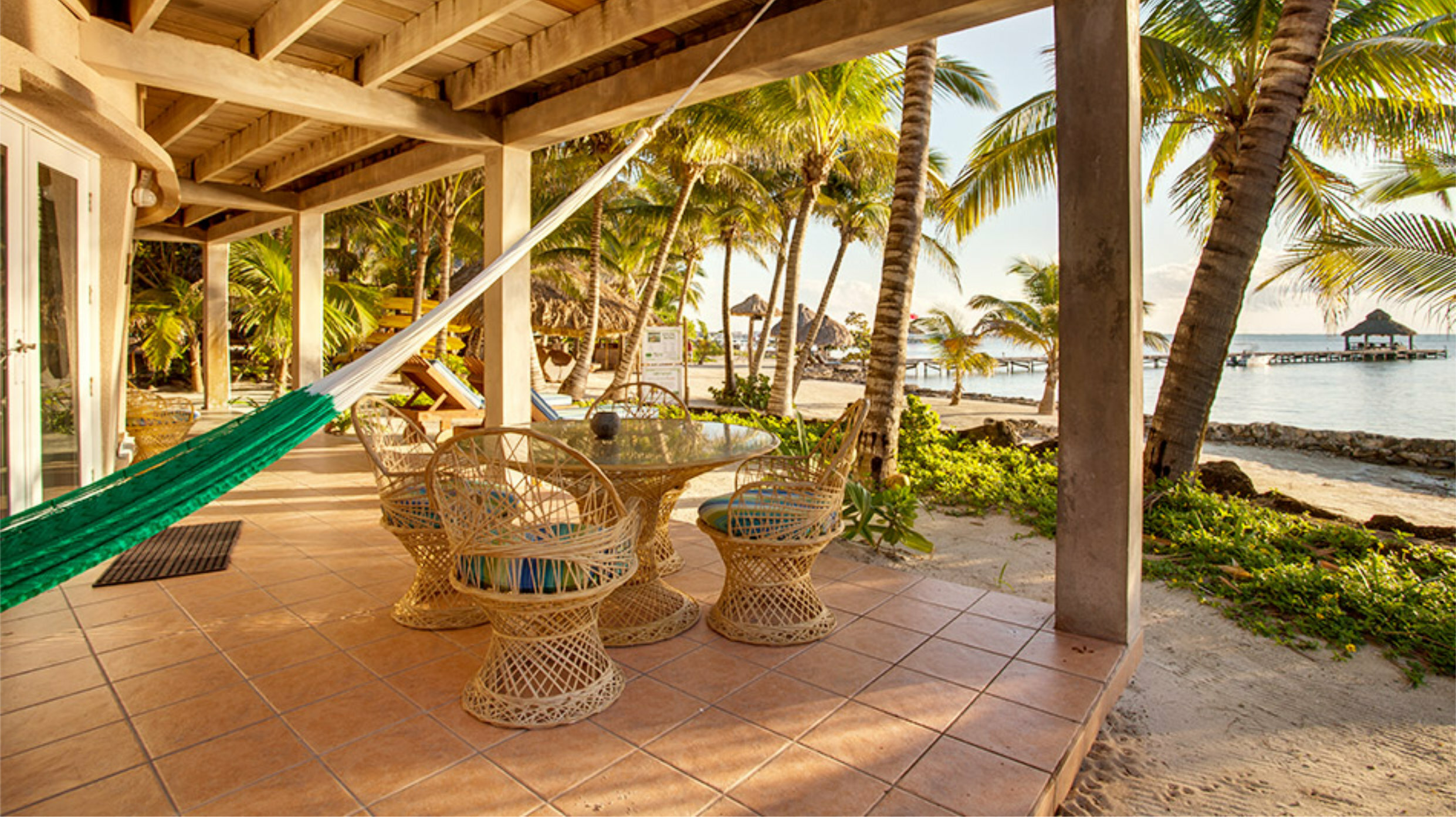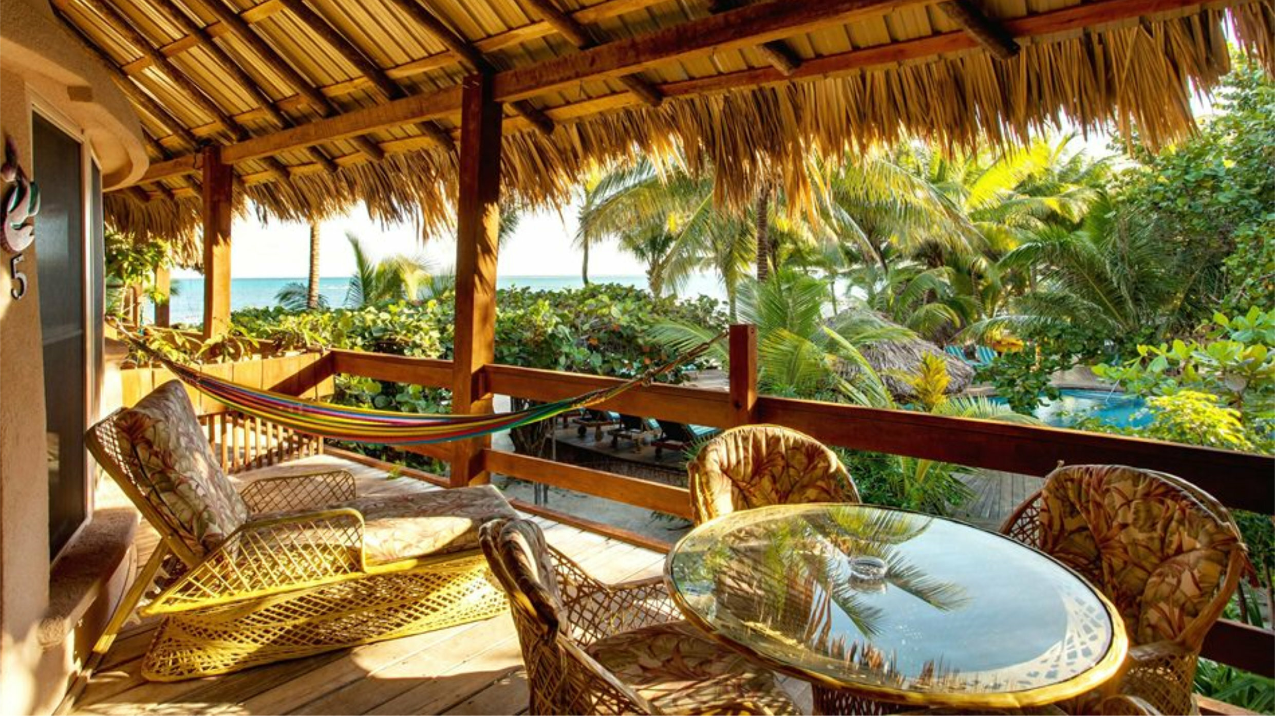 - Private Ocean Front veranda with hammock, loungers, table and chairs