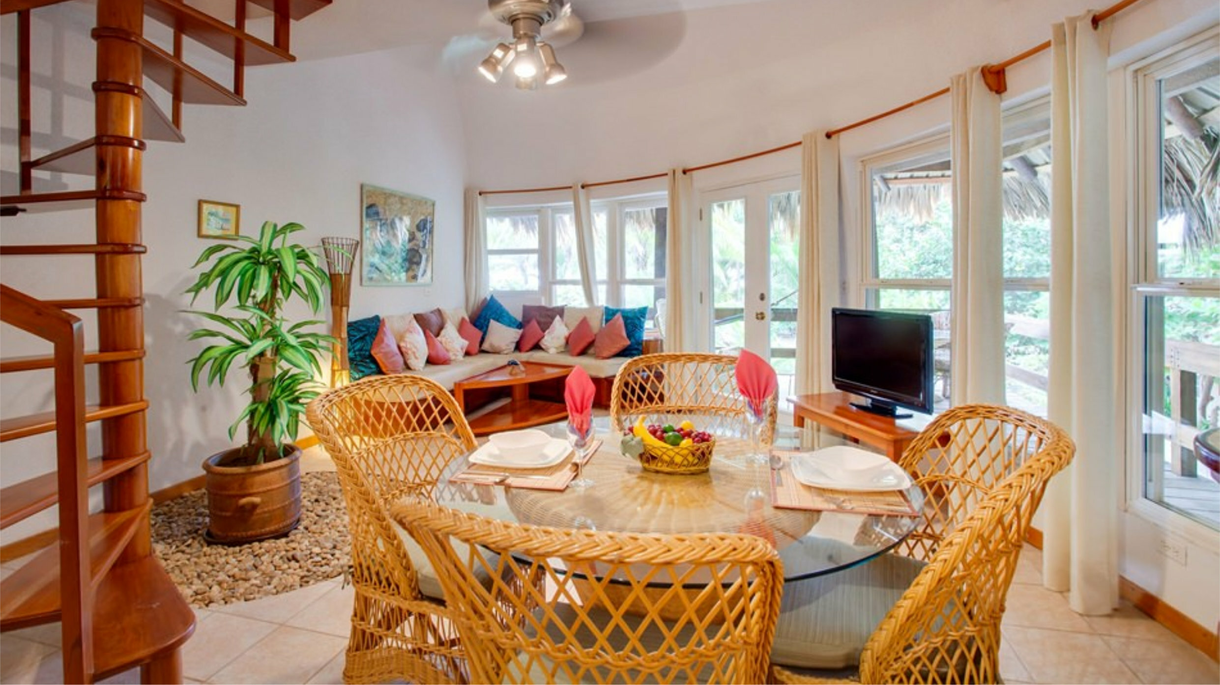 Set among tropical, indigenous gardens, our twenty suites offer privacy and relaxation with an authentic Belizean ambiance. Enjoy panoramic views of the ocean, garden or pool while staying in one of our unique dome units. Take in sweeping sea views from our spacious treetop suites, or relax on a deck lounger in one of the ocean front suites just steps away from the turquoise Caribbean Sea surrounding San Pedro, Ambergris Caye Belize. With a variety of options including studio, one bedroom, loft, two bedroom and three bedroom suites - all units are designed for convenience and comfort. Featuring air-conditioning, ceiling fans, fully equipped kitchens, in-room safes, hair dryers, cable television as well as private furnished decks.